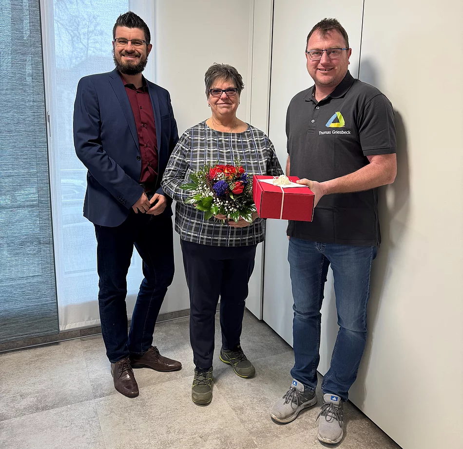Mit einem lachenden und einem weinenden Auge verabschiedeten Geschäftsleiter Sebastian Hauser und der Leiter des interkommunalen Recyclinghofes, Thomas Griesbeck, die langjährige Kollegin und Reinigungskraft Gabriele Martin.