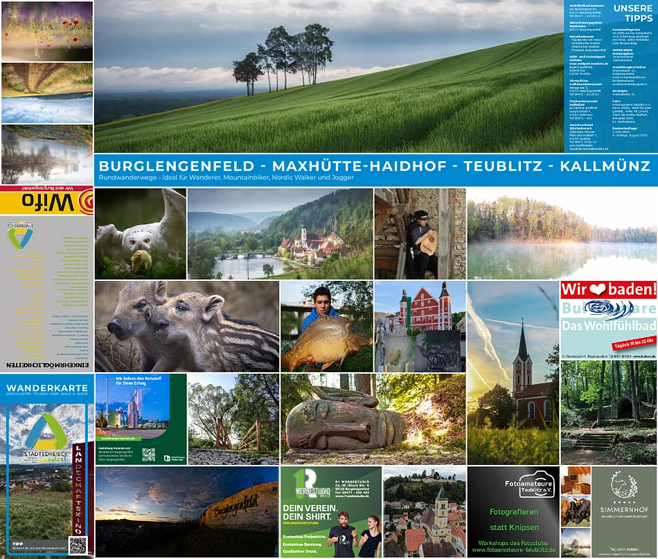 Das R1 Werbestudio in Burglengenfeld erwies sich als zuverlässiger Partner in Sachen Gestaltung und zielgenauer Umsetzung. Beeindruckende Fotos der Fotoamateure aus Teublitz rundeten das moderne Design der neuen Wanderkarte Städtedreieck ab.